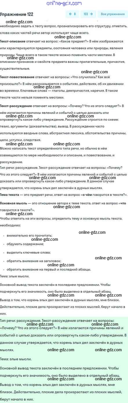 Готовые домашние задания по Русскому языку за 5 класс Учебник Шмелёв, Флоренская Алгоритм успеха 2022 - Глава 8. Вопросы и задания для самоконтроля Часть 2 122