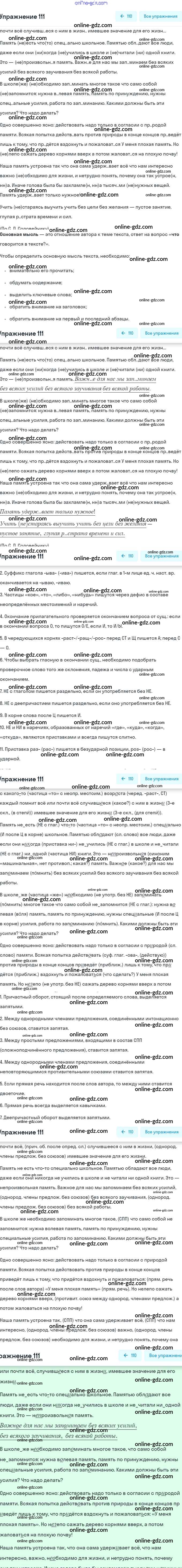 Готовые домашние задания по Русскому языку за 6 класс Рабочая тетрадь Гостева УМК 2015 - Упражнения 111