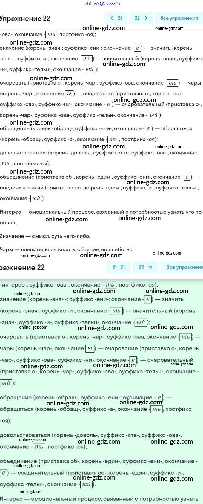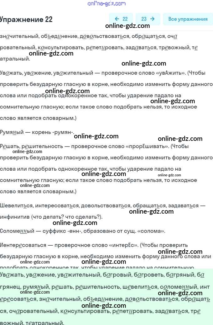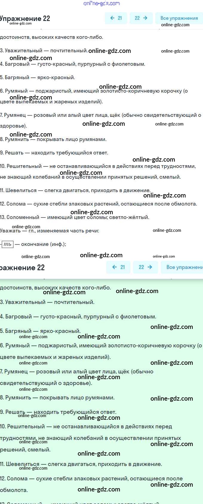 Готовые домашние задания по Русскому языку за 6 класс Рабочая тетрадь Гостева УМК 2015 - Упражнения 22