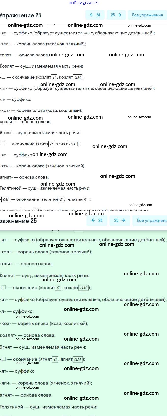 Готовые домашние задания по Русскому языку за 6 класс Рабочая тетрадь Гостева УМК 2015 - Упражнения 25
