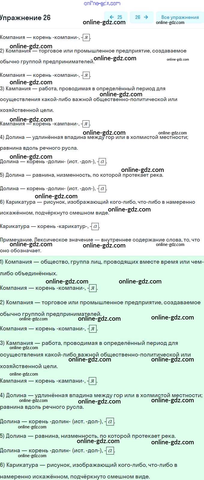 Готовые домашние задания по Русскому языку за 6 класс Рабочая тетрадь Гостева УМК 2015 - Упражнения 26