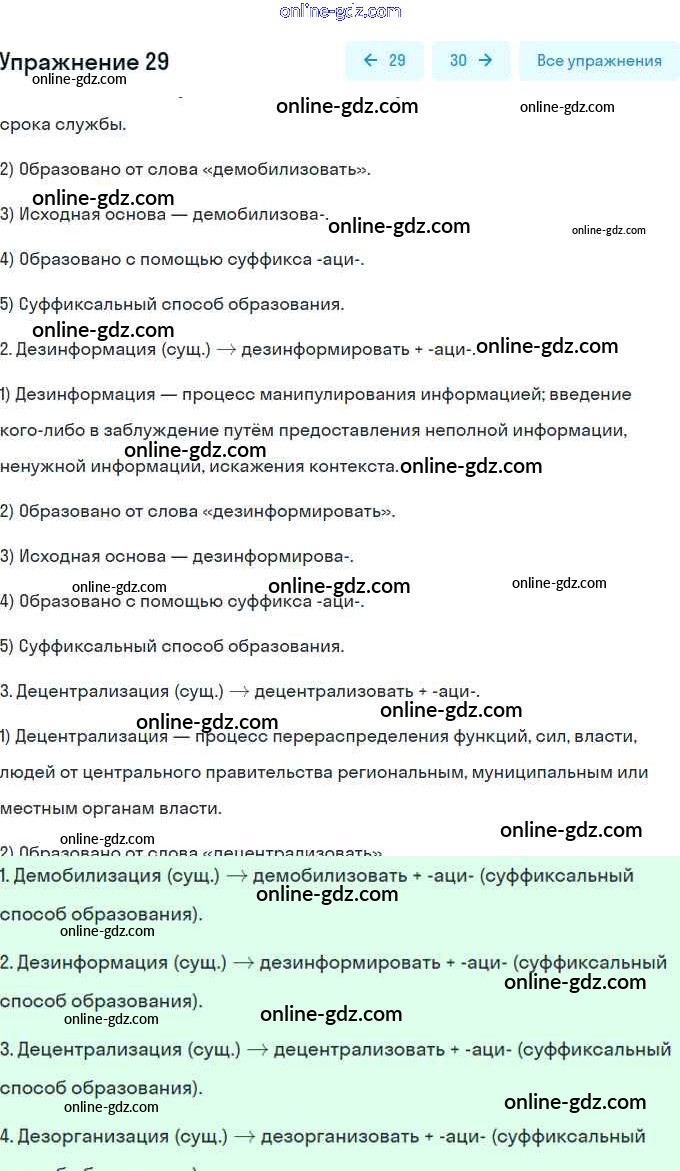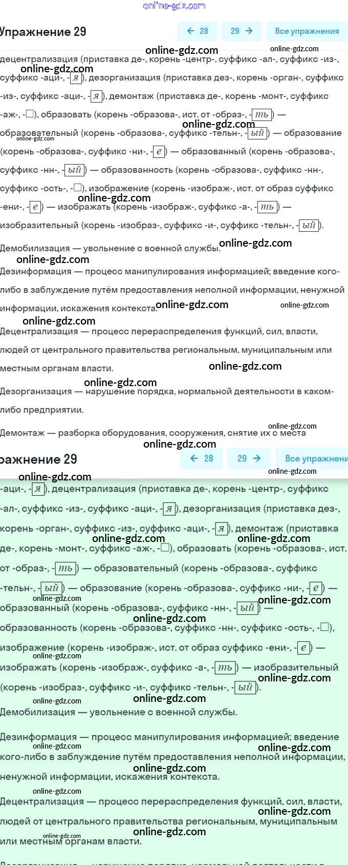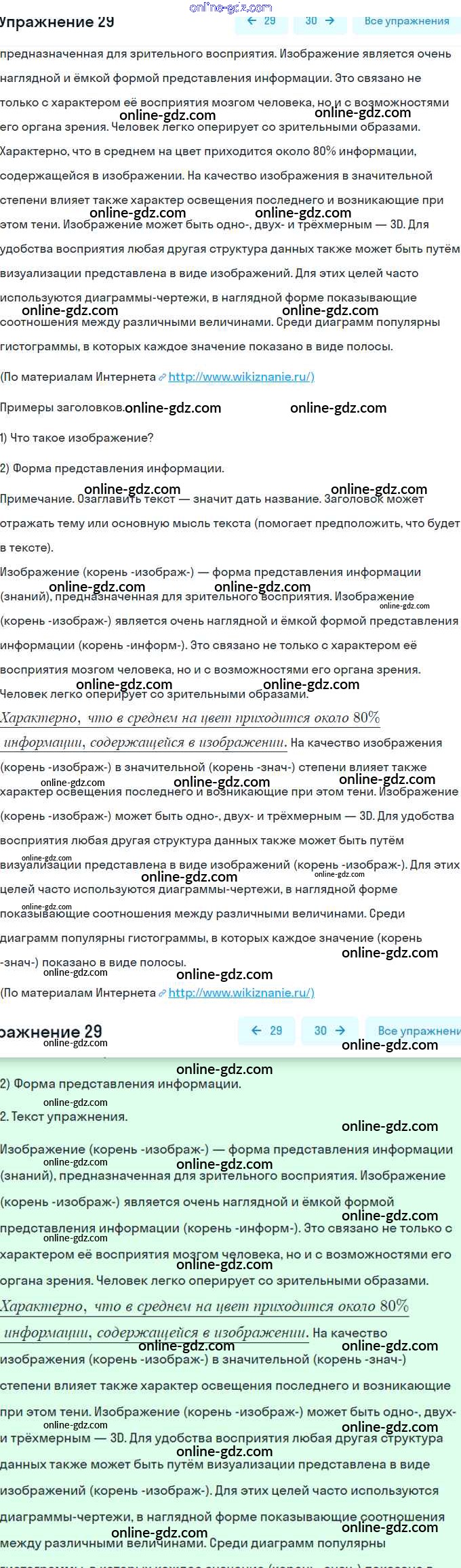 Готовые домашние задания по Русскому языку за 6 класс Рабочая тетрадь Гостева УМК 2015 - Упражнения 29