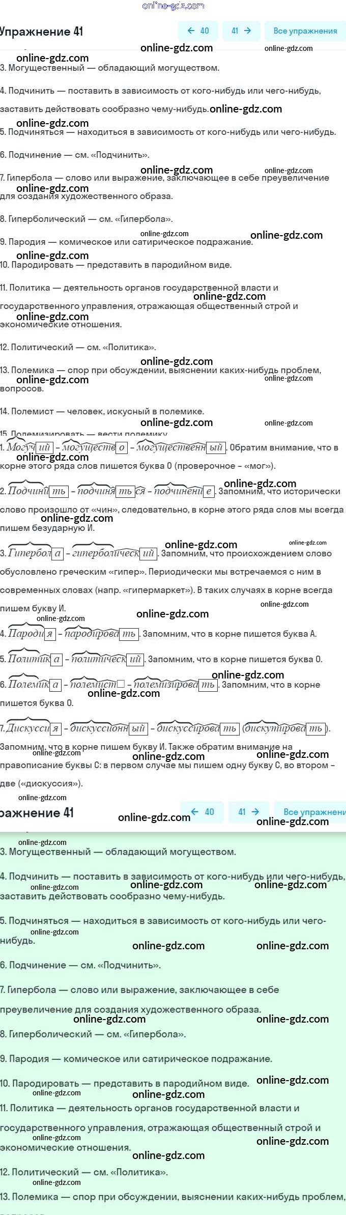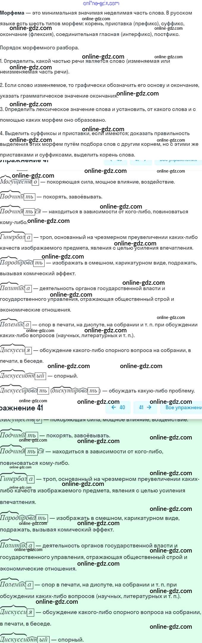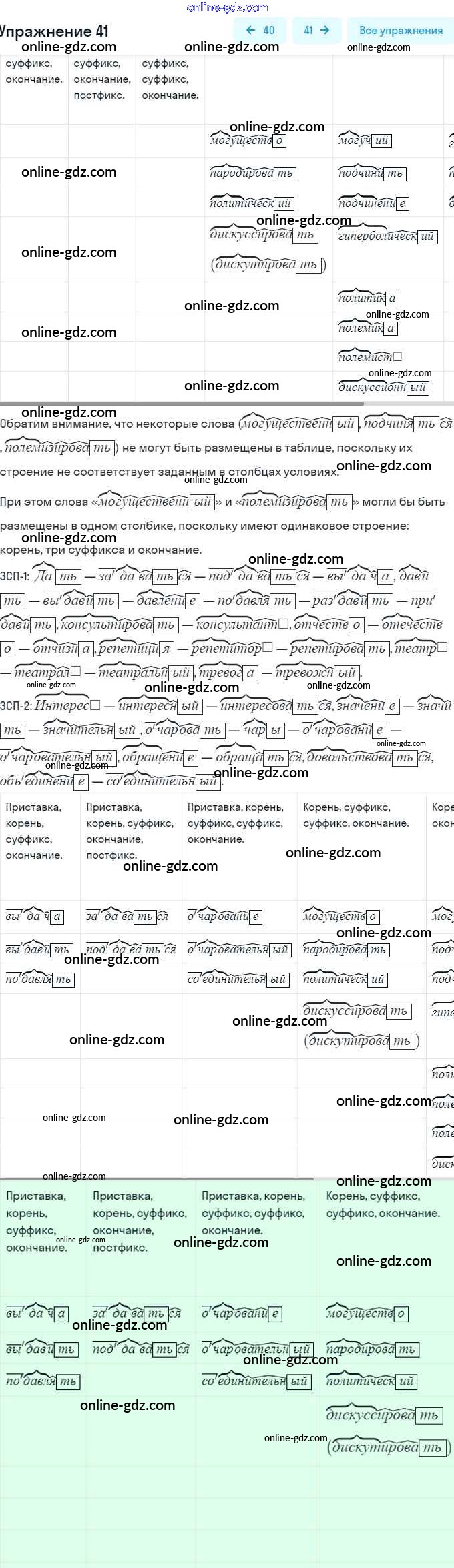 Готовые домашние задания по Русскому языку за 6 класс Рабочая тетрадь Гостева УМК 2015 - Упражнения 41