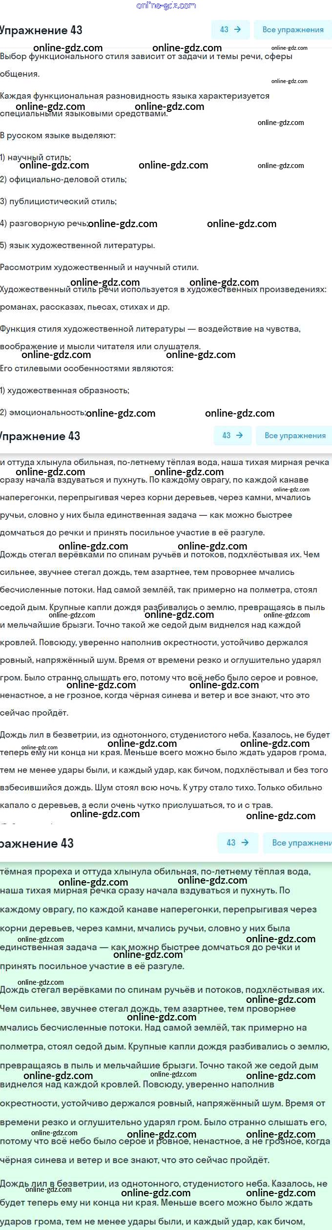 Готовые домашние задания по Русскому языку за 6 класс Рабочая тетрадь Гостева УМК 2015 - Упражнения 43