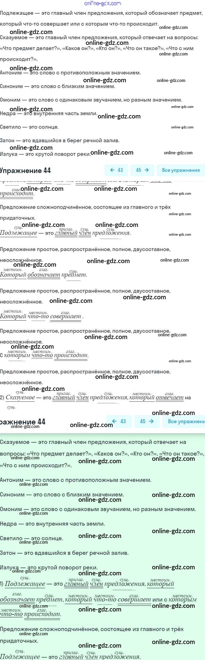 Готовые домашние задания по Русскому языку за 6 класс Рабочая тетрадь Гостева УМК 2015 - Упражнения 44