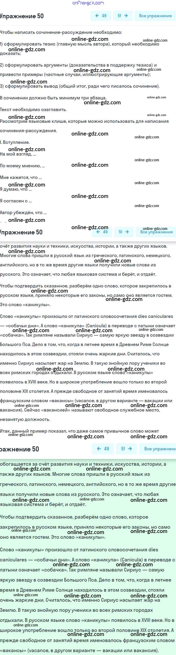 Готовые домашние задания по Русскому языку за 6 класс Рабочая тетрадь Гостева УМК 2015 - Упражнения 50