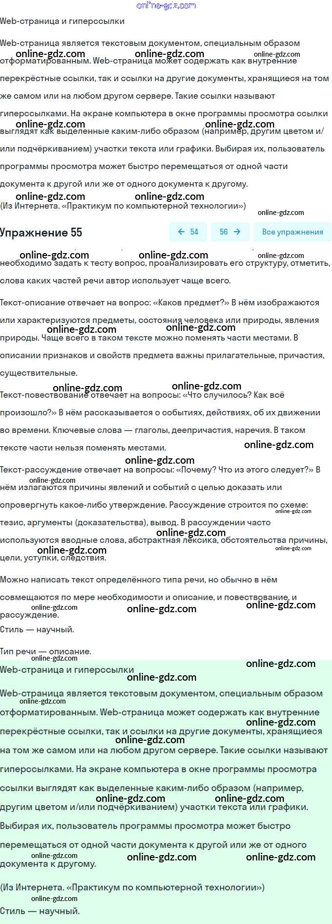 Готовые домашние задания по Русскому языку за 6 класс Рабочая тетрадь Гостева УМК 2015 - Упражнения 55