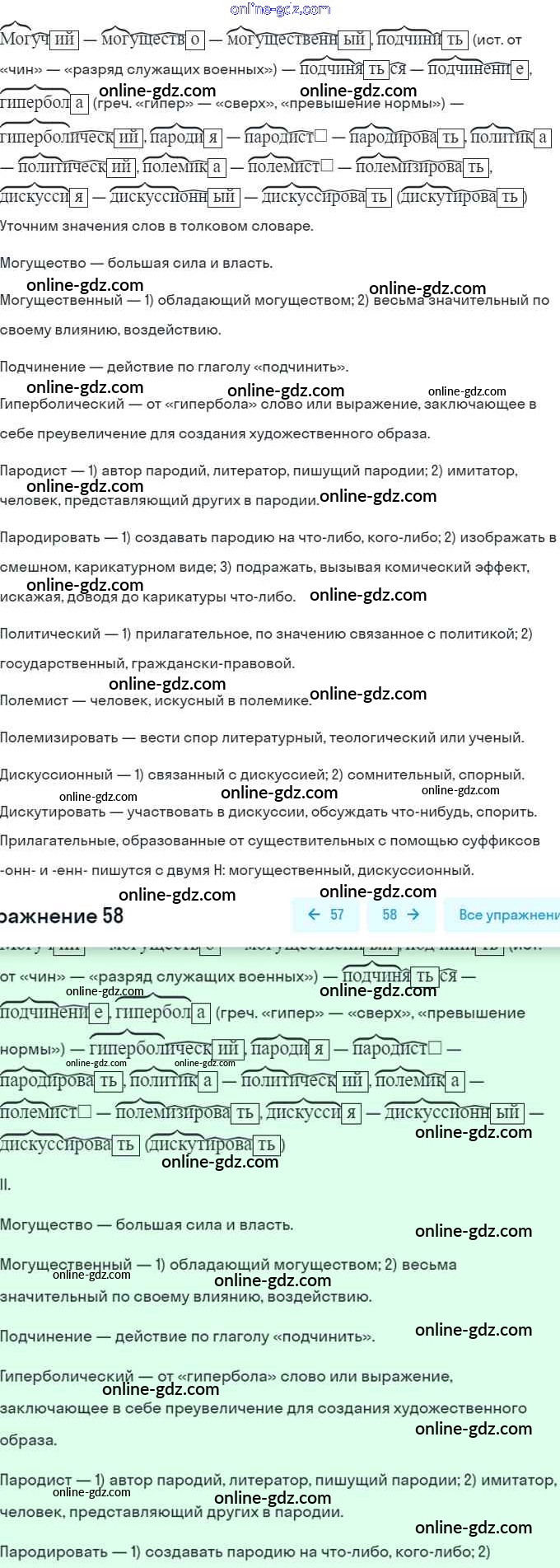 Готовые домашние задания по Русскому языку за 6 класс Рабочая тетрадь Гостева УМК 2015 - Упражнения 58