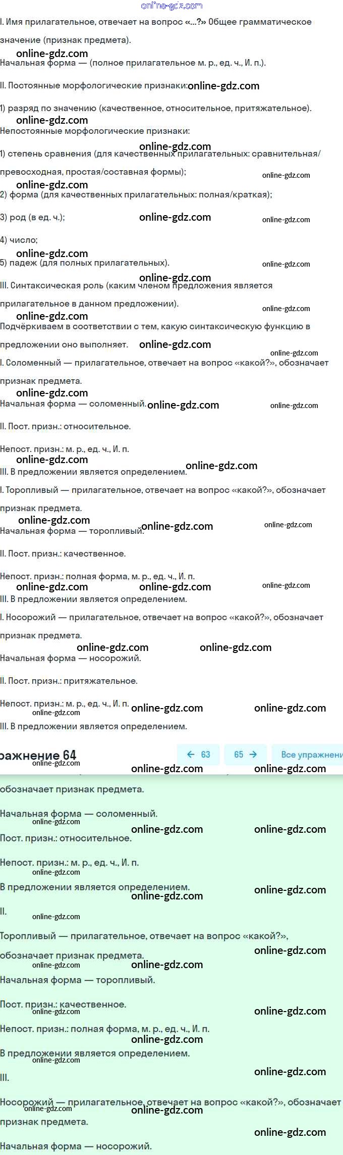 Готовые домашние задания по Русскому языку за 6 класс Рабочая тетрадь Гостева УМК 2015 - Упражнения 64