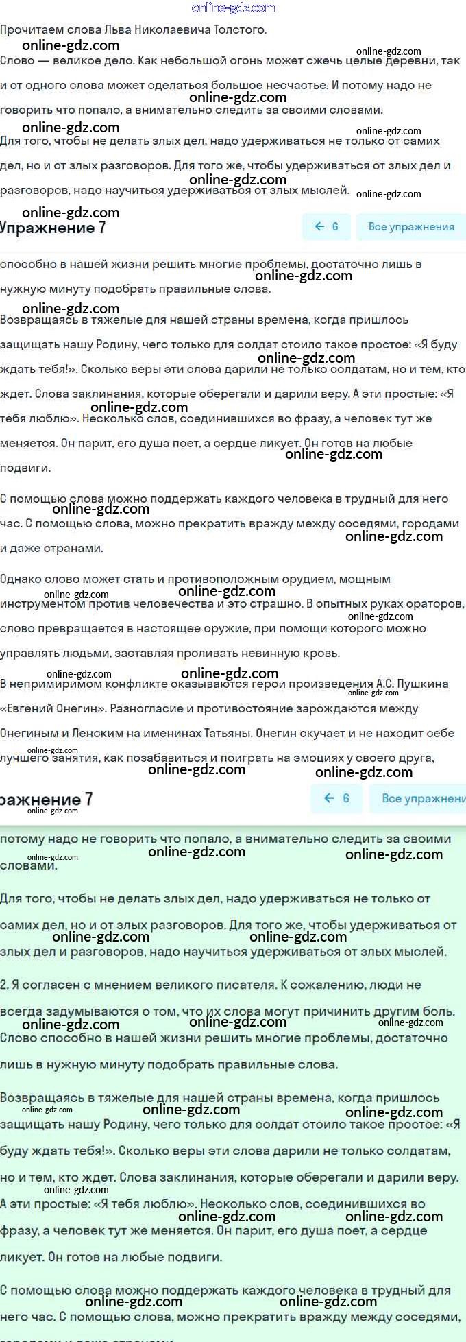 Готовые домашние задания по Русскому языку за 6 класс Рабочая тетрадь Гостева УМК 2015 - Упражнения 7
