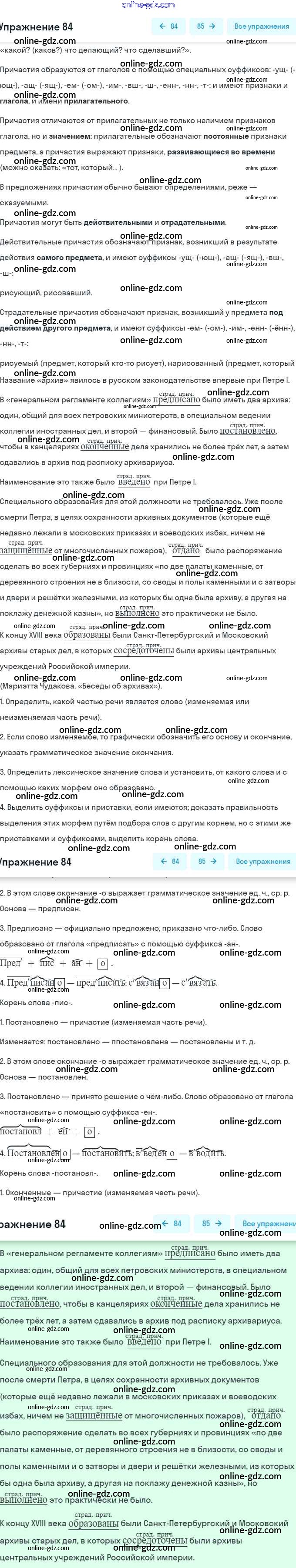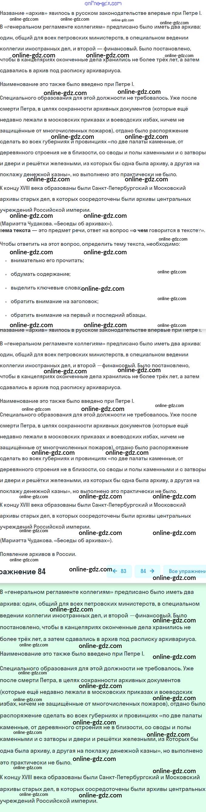 Готовые домашние задания по Русскому языку за 6 класс Рабочая тетрадь Гостева УМК 2015 - Упражнения 84