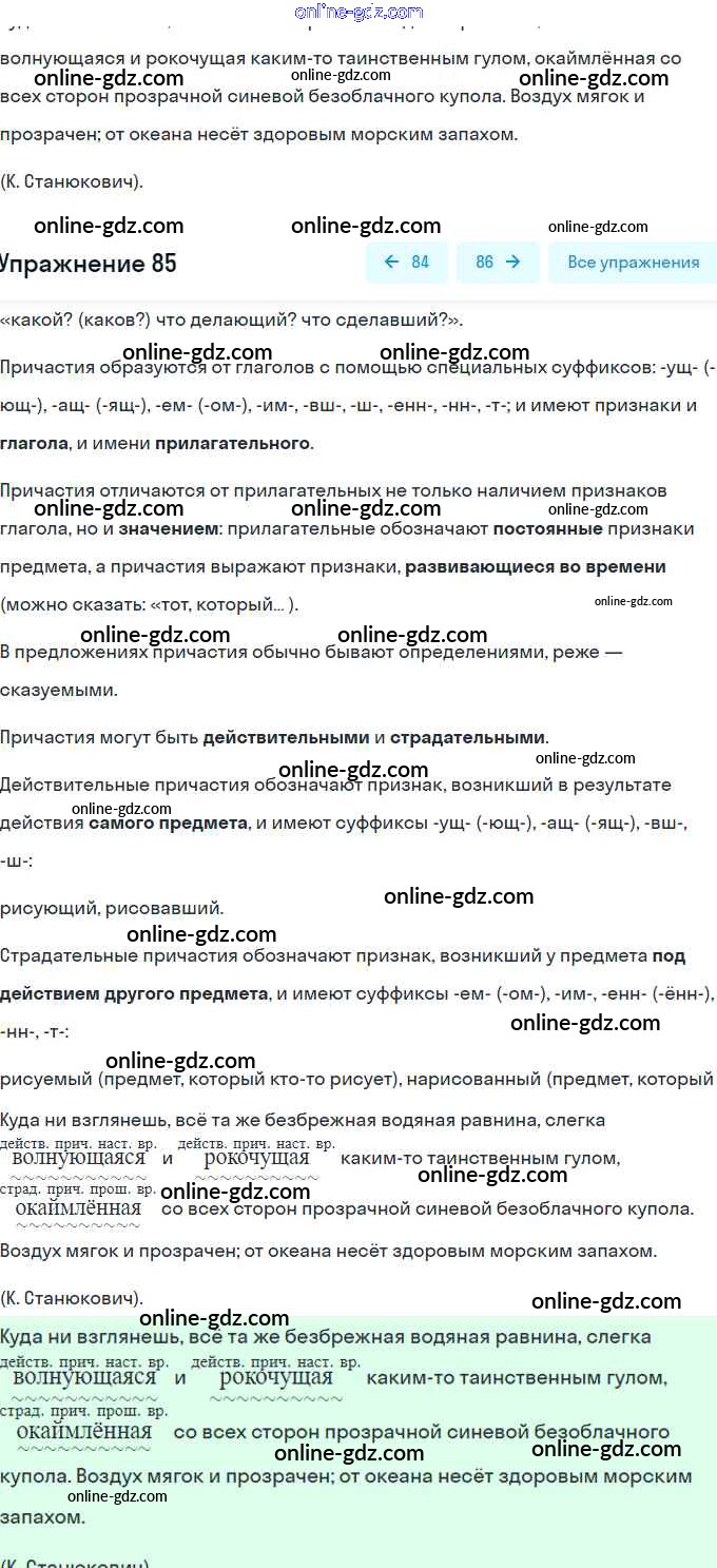 Готовые домашние задания по Русскому языку за 6 класс Рабочая тетрадь Гостева УМК 2015 - Упражнения 85