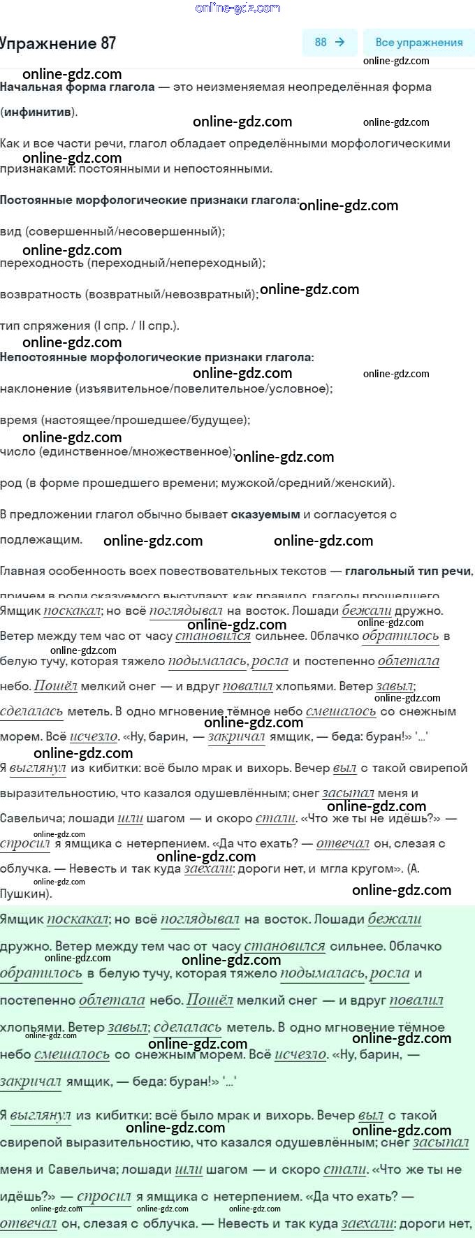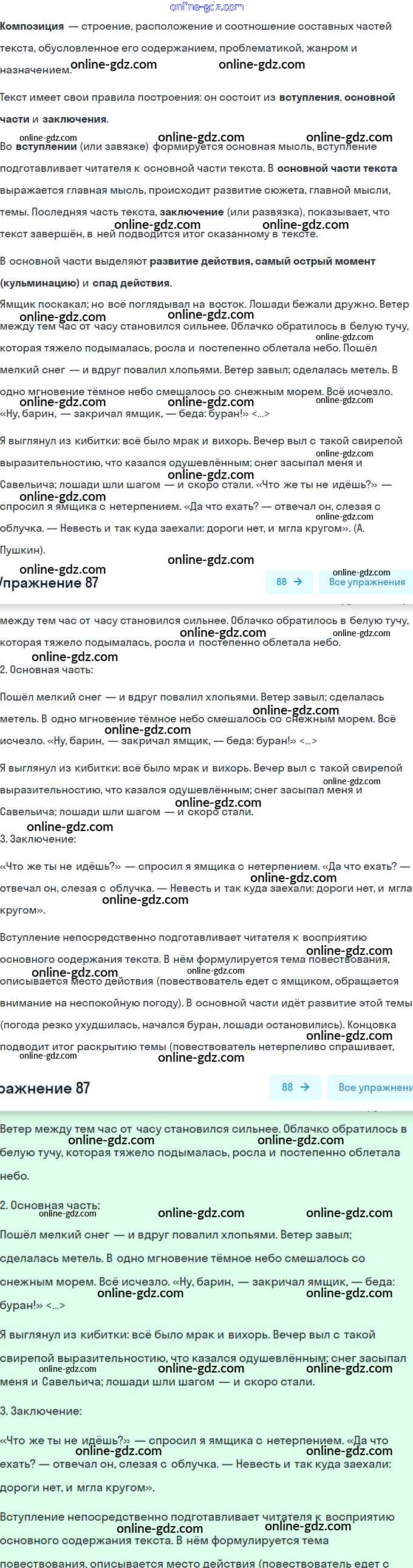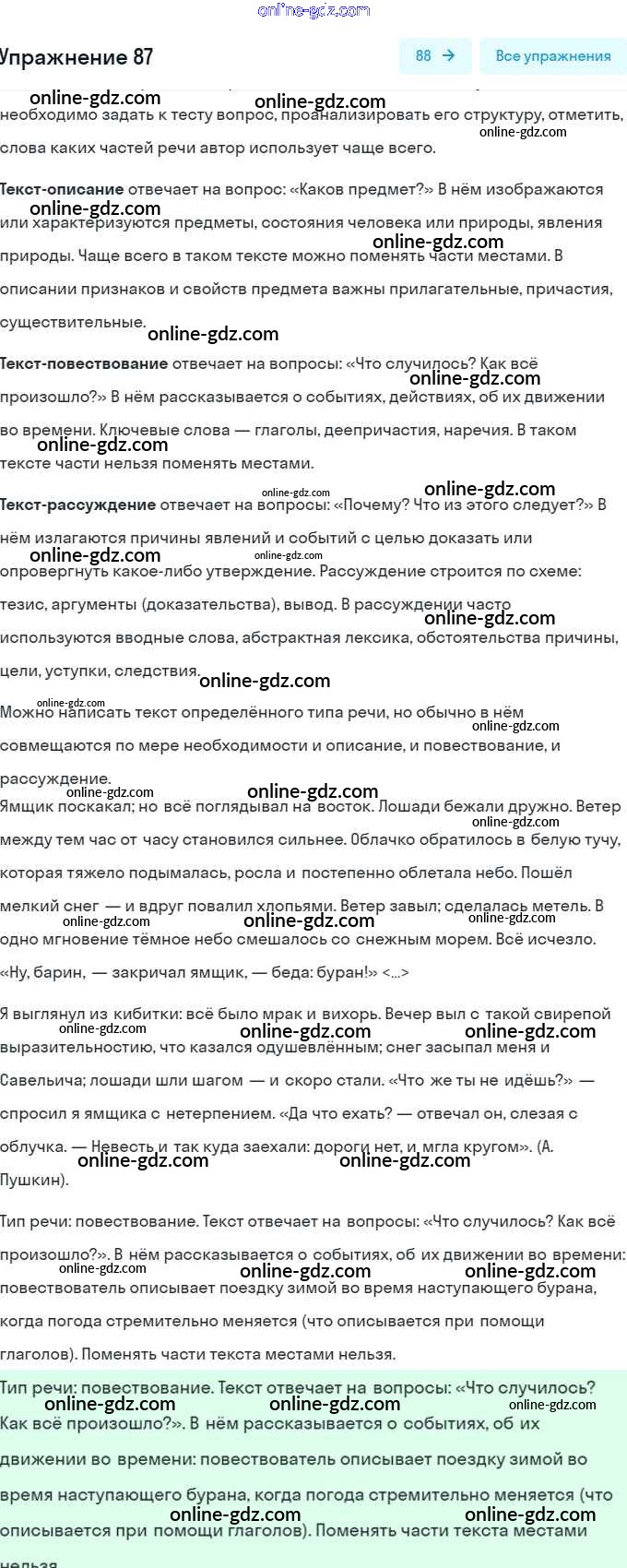 Готовые домашние задания по Русскому языку за 6 класс Рабочая тетрадь Гостева УМК 2015 - Упражнения 87