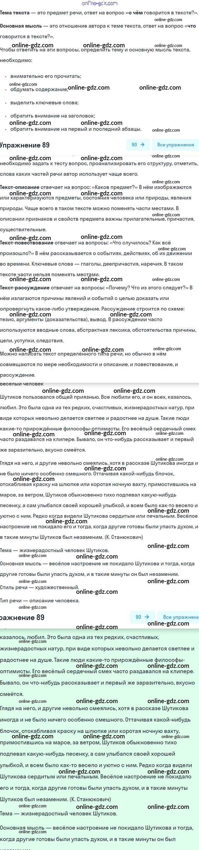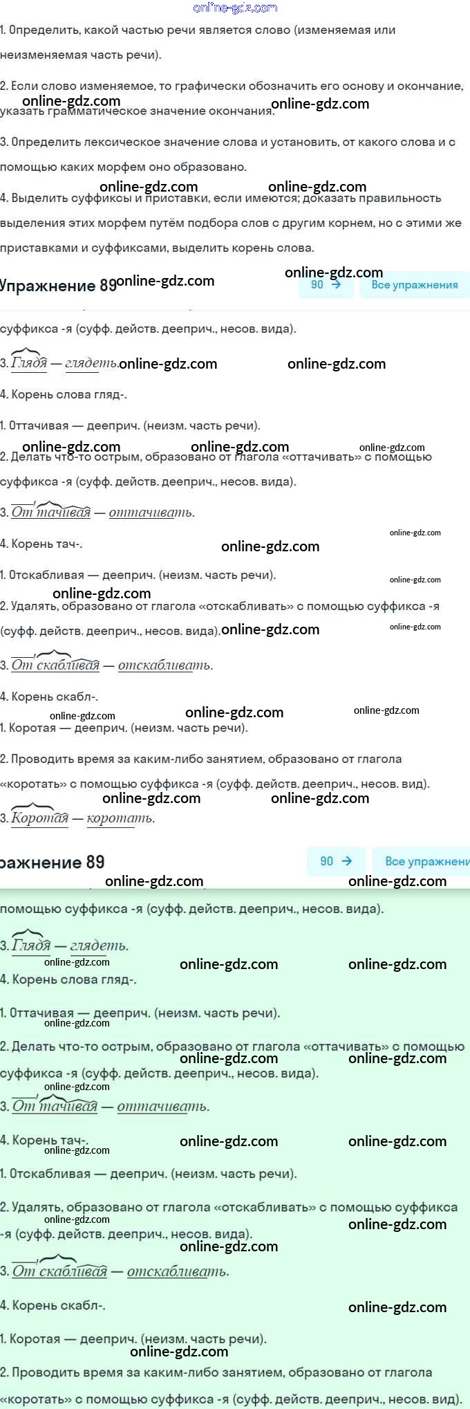 Готовые домашние задания по Русскому языку за 6 класс Рабочая тетрадь Гостева УМК 2015 - Упражнения 89