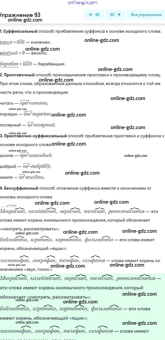 Готовые домашние задания по Русскому языку за 6 класс Рабочая тетрадь Гостева УМК 2015 - Упражнения 93
