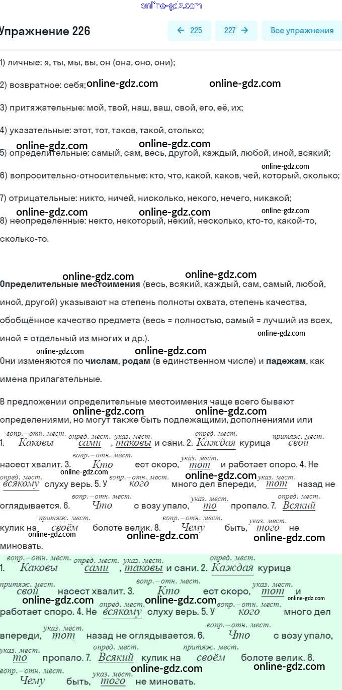 Готовые домашние задания по Русскому языку за 6 класс Рабочая тетрадь Янченко, Латфуллина 2022 - Упражнения 226