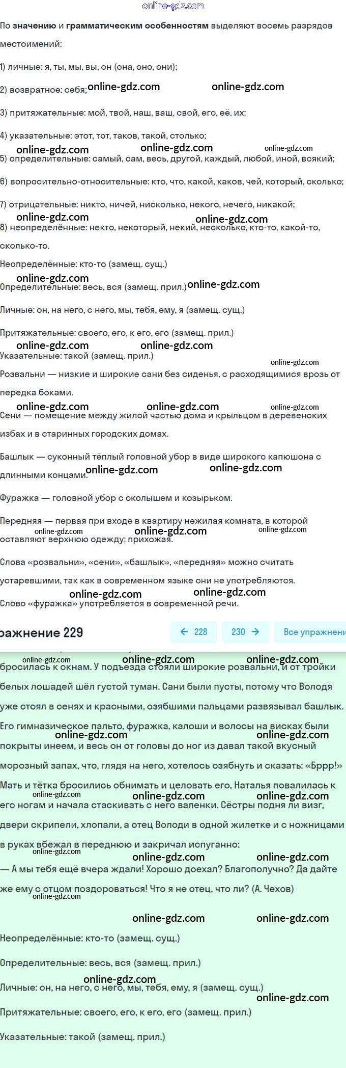 Готовые домашние задания по Русскому языку за 6 класс Рабочая тетрадь Янченко, Латфуллина 2022 - Упражнения 229