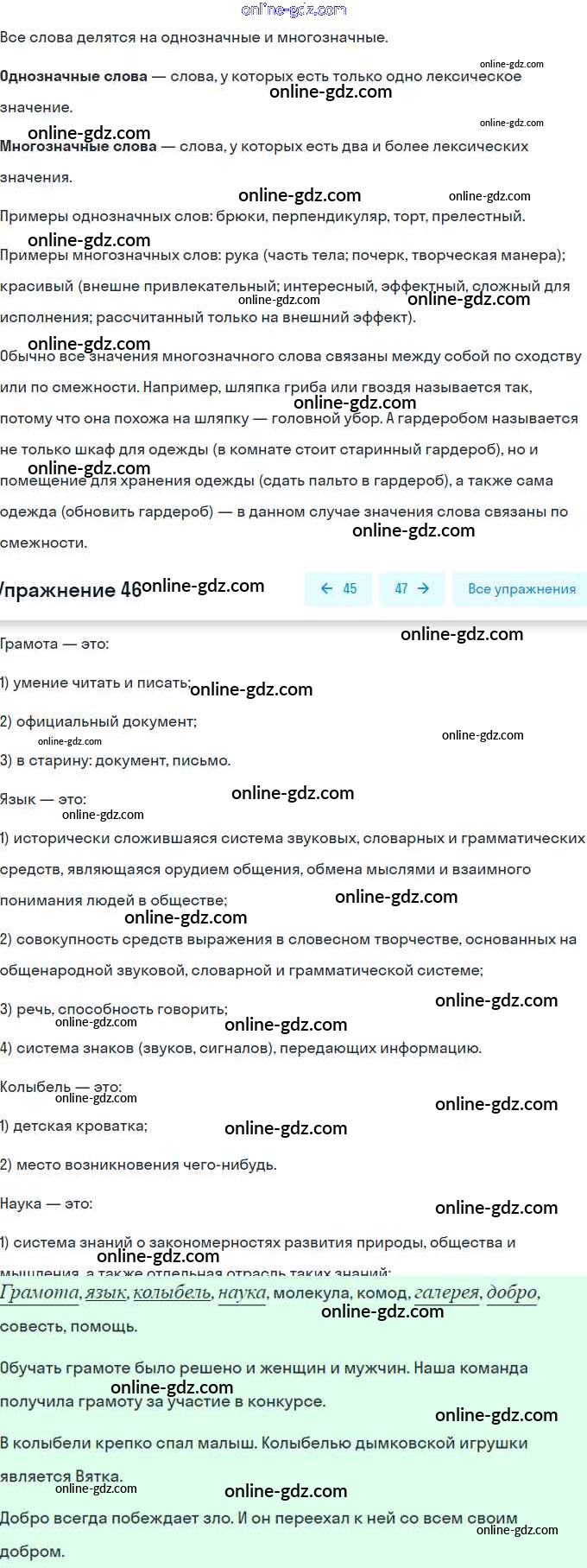 Готовые домашние задания по Русскому языку за 6 класс Рабочая тетрадь Янченко, Латфуллина 2022 - Упражнения 46