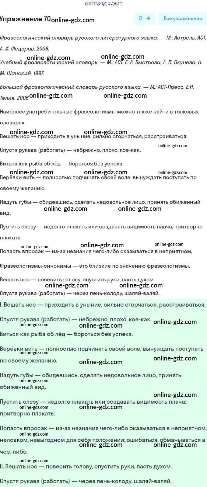 Готовые домашние задания по Русскому языку за 6 класс Рабочая тетрадь Янченко, Латфуллина 2022 - Упражнения 70