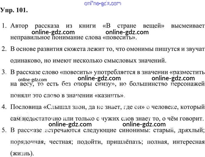Готовые домашние задания по Русскому языку за 6 класс Учебник Александрова, Загоровская 2020 - Упражнения 101