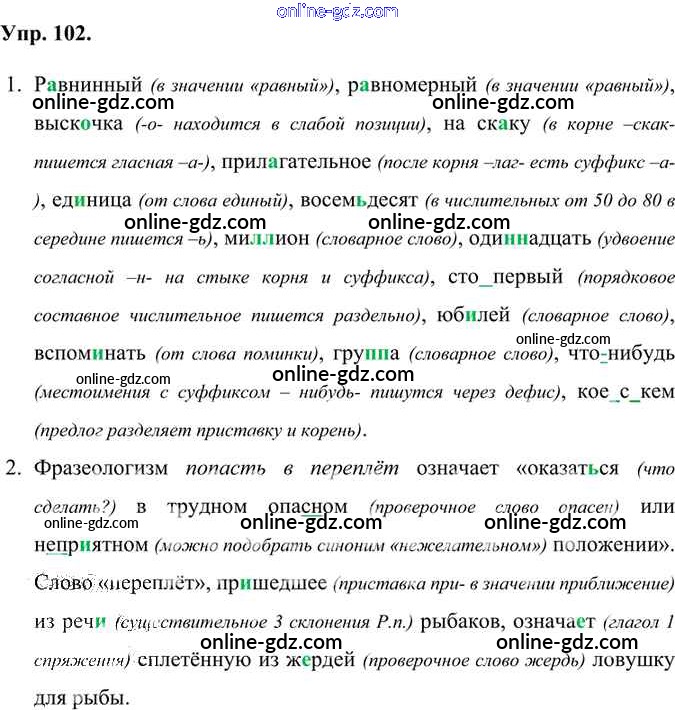 Готовые домашние задания по Русскому языку за 6 класс Учебник Александрова, Загоровская 2020 - Упражнения 102