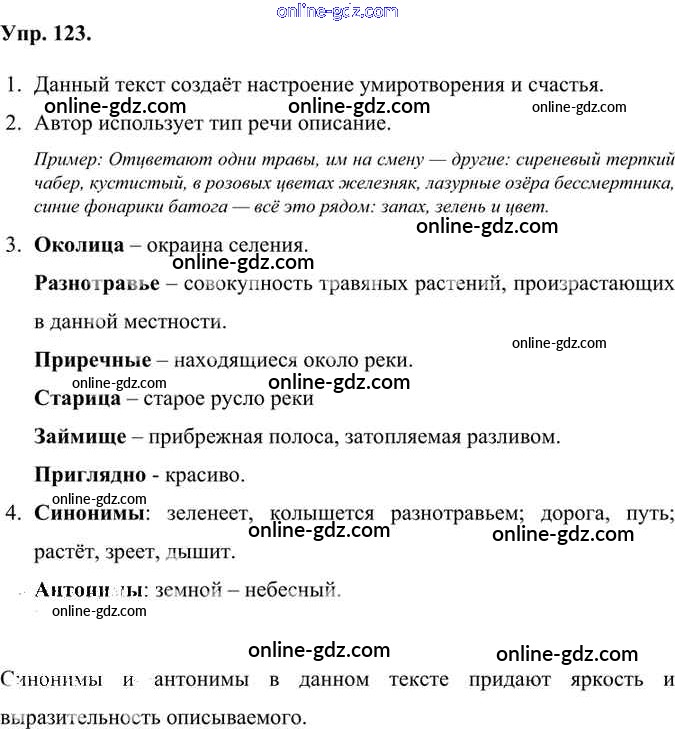Готовые домашние задания по Русскому языку за 6 класс Учебник Александрова, Загоровская 2020 - Упражнения 123