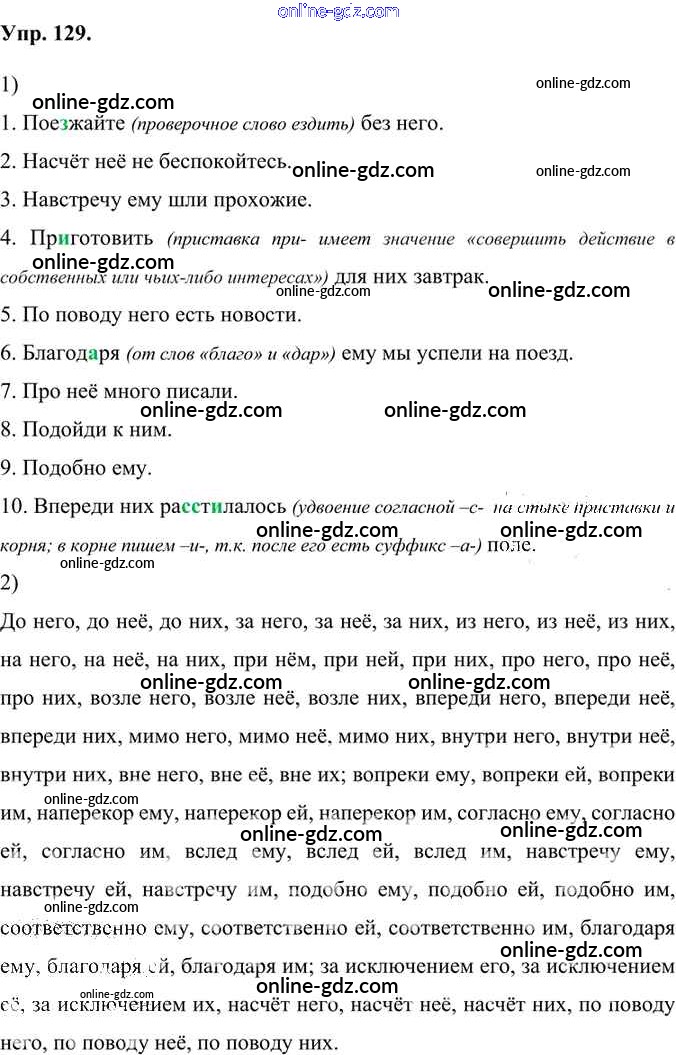 Готовые домашние задания по Русскому языку за 6 класс Учебник Александрова, Загоровская 2020 - Упражнения 129