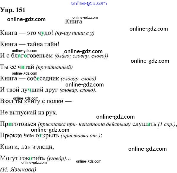 Готовые домашние задания по Русскому языку за 6 класс Учебник Александрова, Загоровская 2020 - Упражнения 151