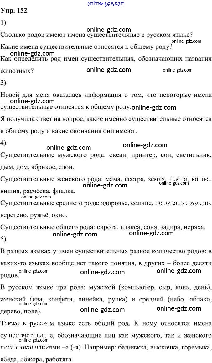 Готовые домашние задания по Русскому языку за 6 класс Учебник Александрова, Загоровская 2020 - Упражнения 152