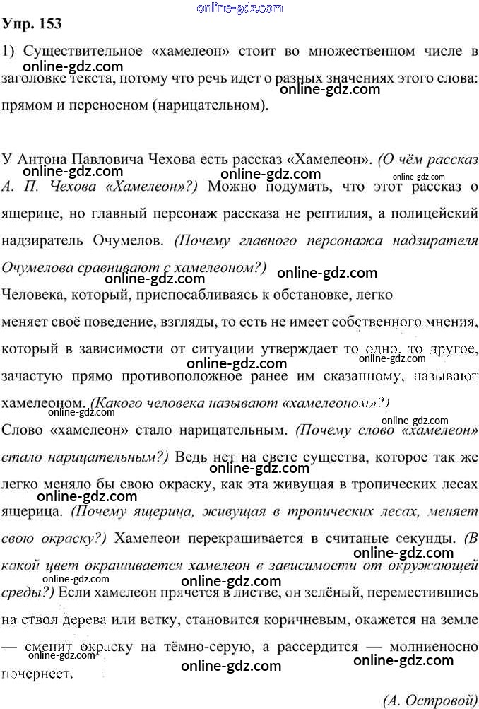 Готовые домашние задания по Русскому языку за 6 класс Учебник Александрова, Загоровская 2020 - Упражнения 153