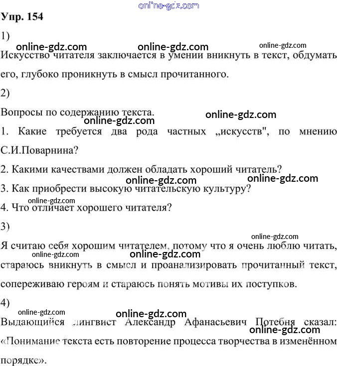 Готовые домашние задания по Русскому языку за 6 класс Учебник Александрова, Загоровская 2020 - Упражнения 154