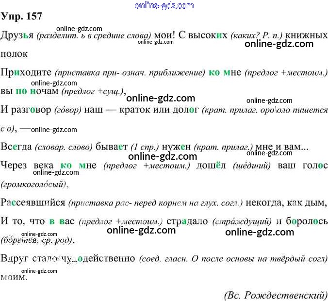 Готовые домашние задания по Русскому языку за 6 класс Учебник Александрова, Загоровская 2020 - Упражнения 157