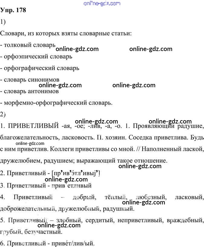 Готовые домашние задания по Русскому языку за 6 класс Учебник Александрова, Загоровская 2020 - Упражнения 178