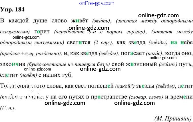 Готовые домашние задания по Русскому языку за 6 класс Учебник Александрова, Загоровская 2020 - Упражнения 184
