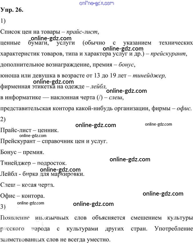 Готовые домашние задания по Русскому языку за 6 класс Учебник Александрова, Загоровская 2020 - Упражнения 26