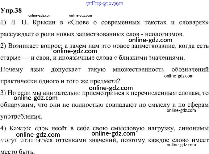 Готовые домашние задания по Русскому языку за 6 класс Учебник Александрова, Загоровская 2020 - Упражнения 38