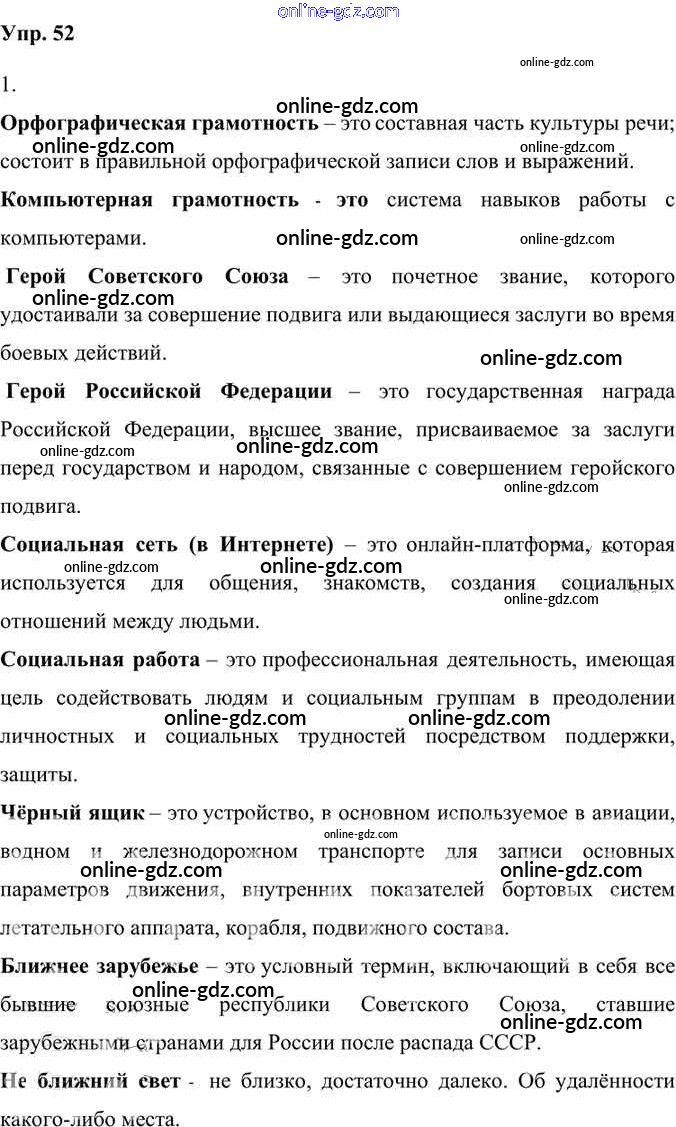 Готовые домашние задания по Русскому языку за 6 класс Учебник Александрова, Загоровская 2020 - Упражнения 52
