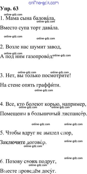 Готовые домашние задания по Русскому языку за 6 класс Учебник Александрова, Загоровская 2020 - Упражнения 63