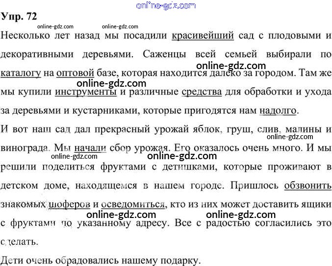 Готовые домашние задания по Русскому языку за 6 класс Учебник Александрова, Загоровская 2020 - Упражнения 72