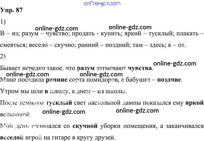 Готовые домашние задания по Русскому языку за 6 класс Учебник Александрова, Загоровская 2020 - Упражнения 87