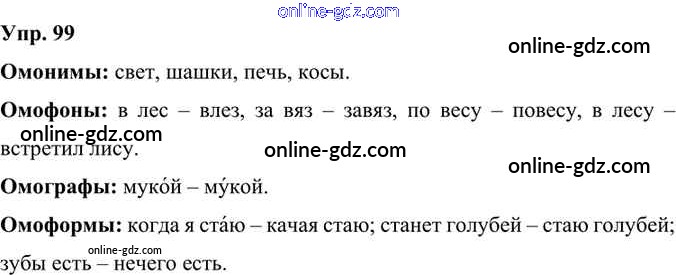 Готовые домашние задания по Русскому языку за 6 класс Учебник Александрова, Загоровская 2020 - Упражнения 99