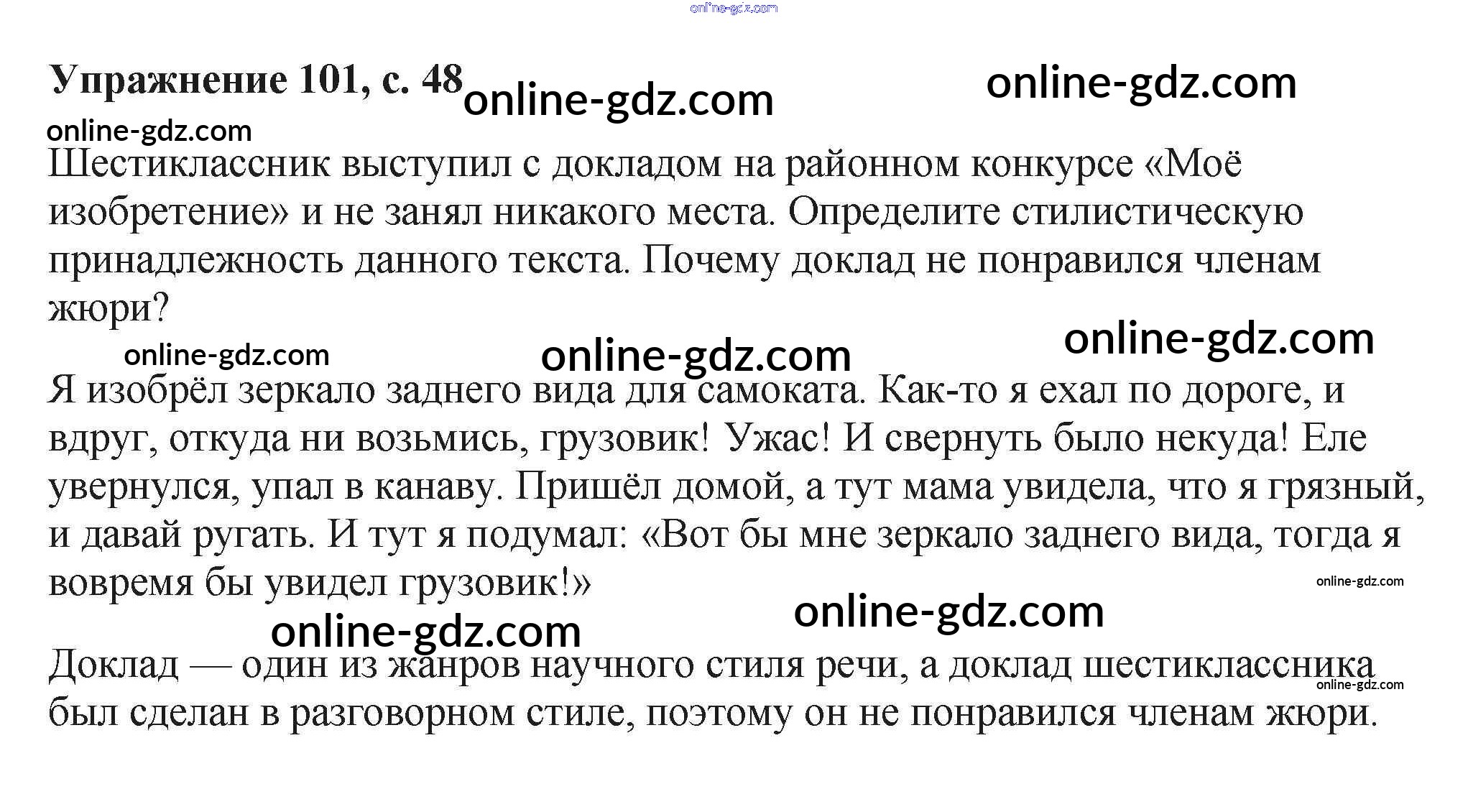 Готовые домашние задания по Русскому языку за 6 класс Учебник Баранов, Ладыженская 2015 - Упражнения Часть 1 101