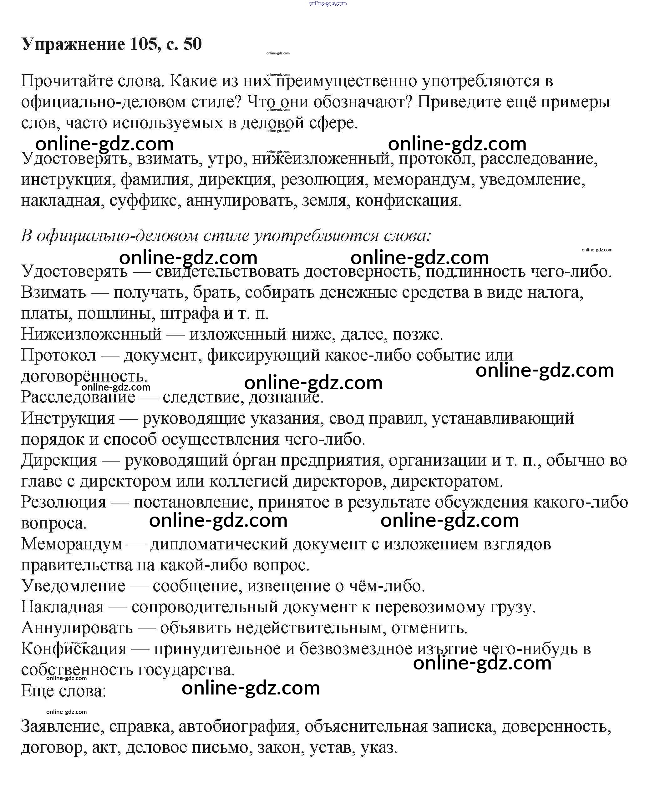 Готовые домашние задания по Русскому языку за 6 класс Учебник Баранов, Ладыженская 2015 - Упражнения Часть 1 105
