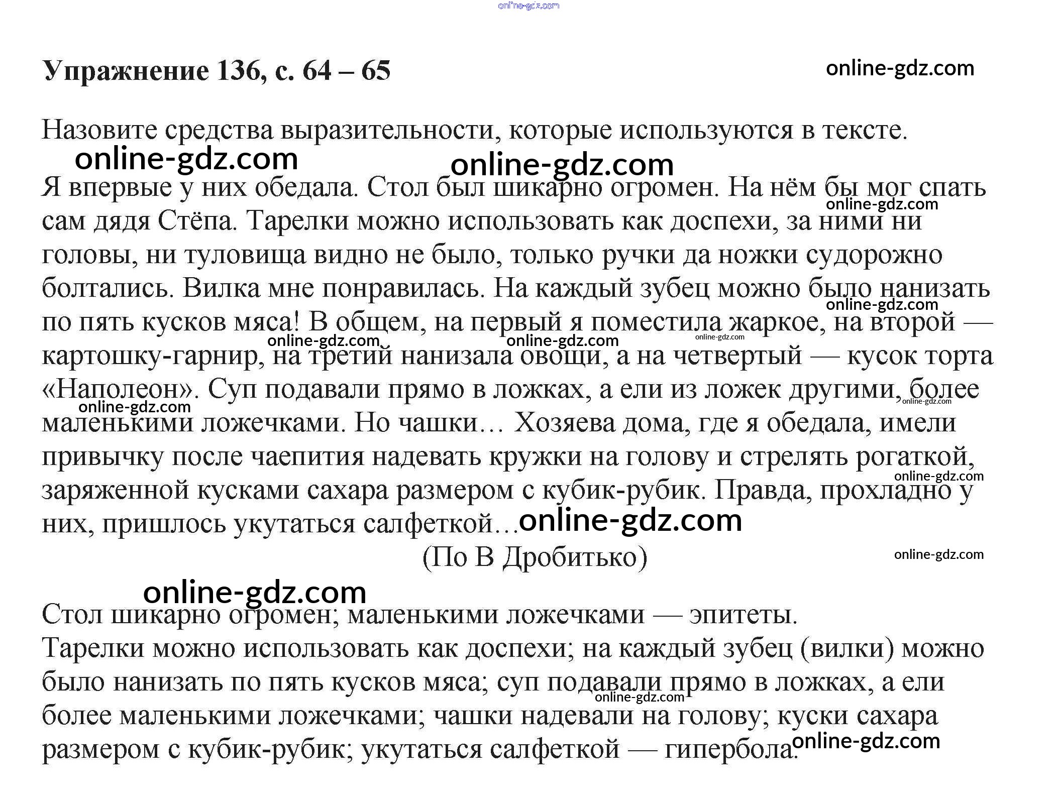 Готовые домашние задания по Русскому языку за 6 класс Учебник Баранов, Ладыженская 2015 - Упражнения Часть 1 136