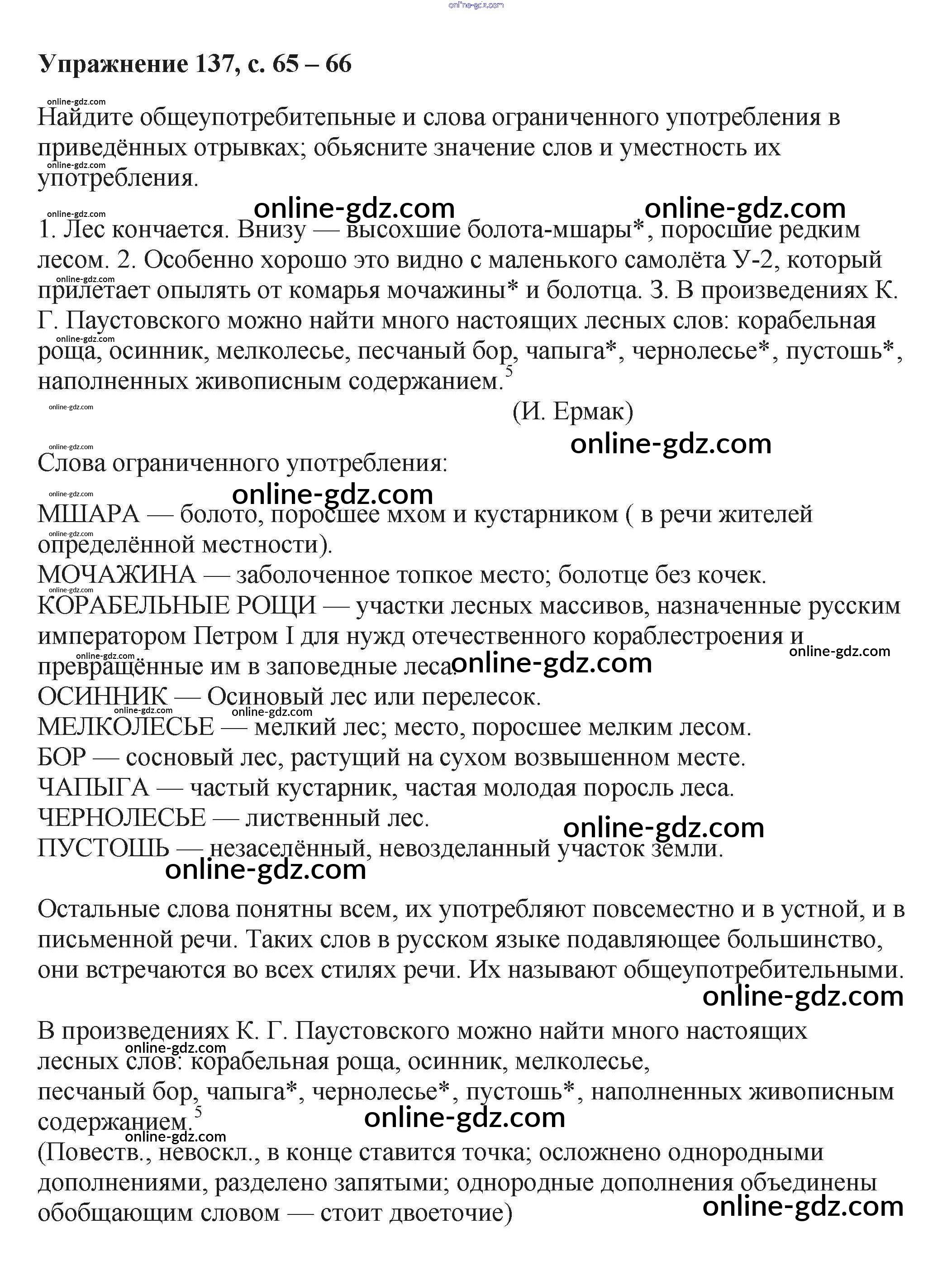 Готовые домашние задания по Русскому языку за 6 класс Учебник Баранов, Ладыженская 2015 - Упражнения Часть 1 137