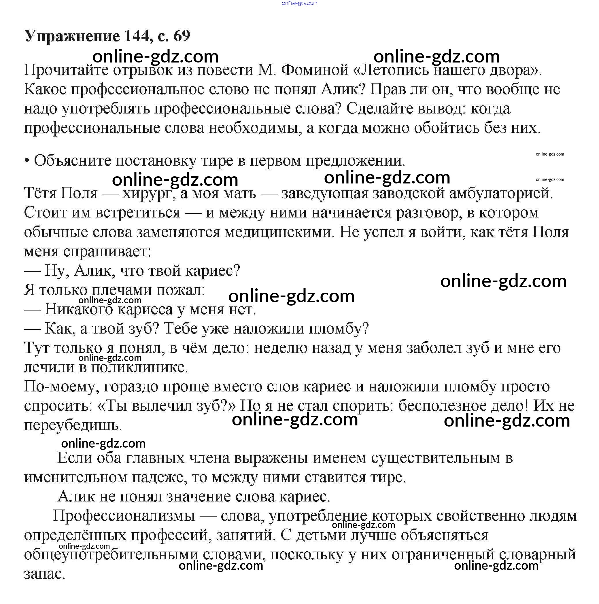 Готовые домашние задания по Русскому языку за 6 класс Учебник Баранов, Ладыженская 2015 - Упражнения Часть 1 144