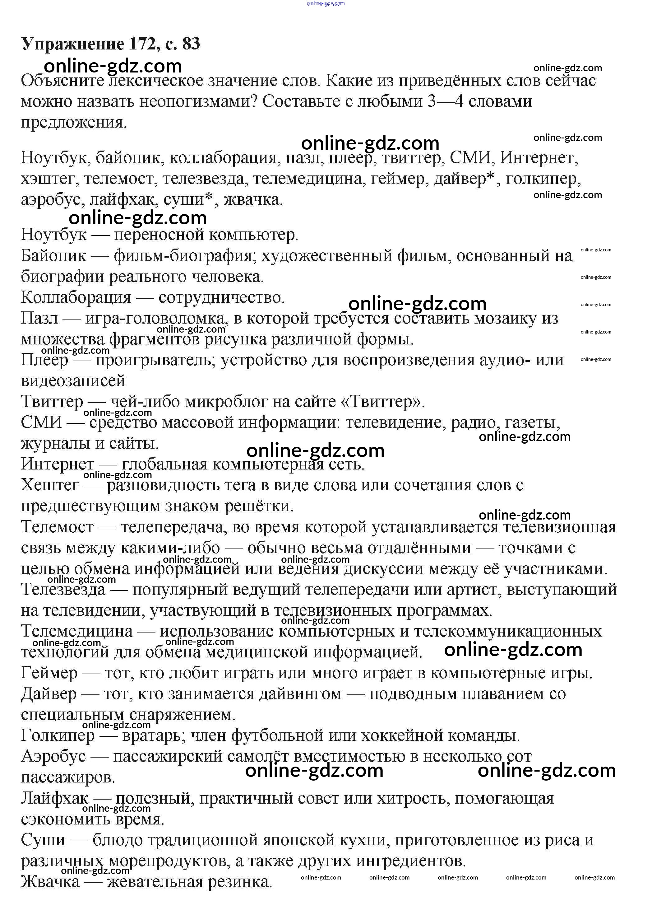 Готовые домашние задания по Русскому языку за 6 класс Учебник Баранов, Ладыженская 2015 - Упражнения Часть 1 172