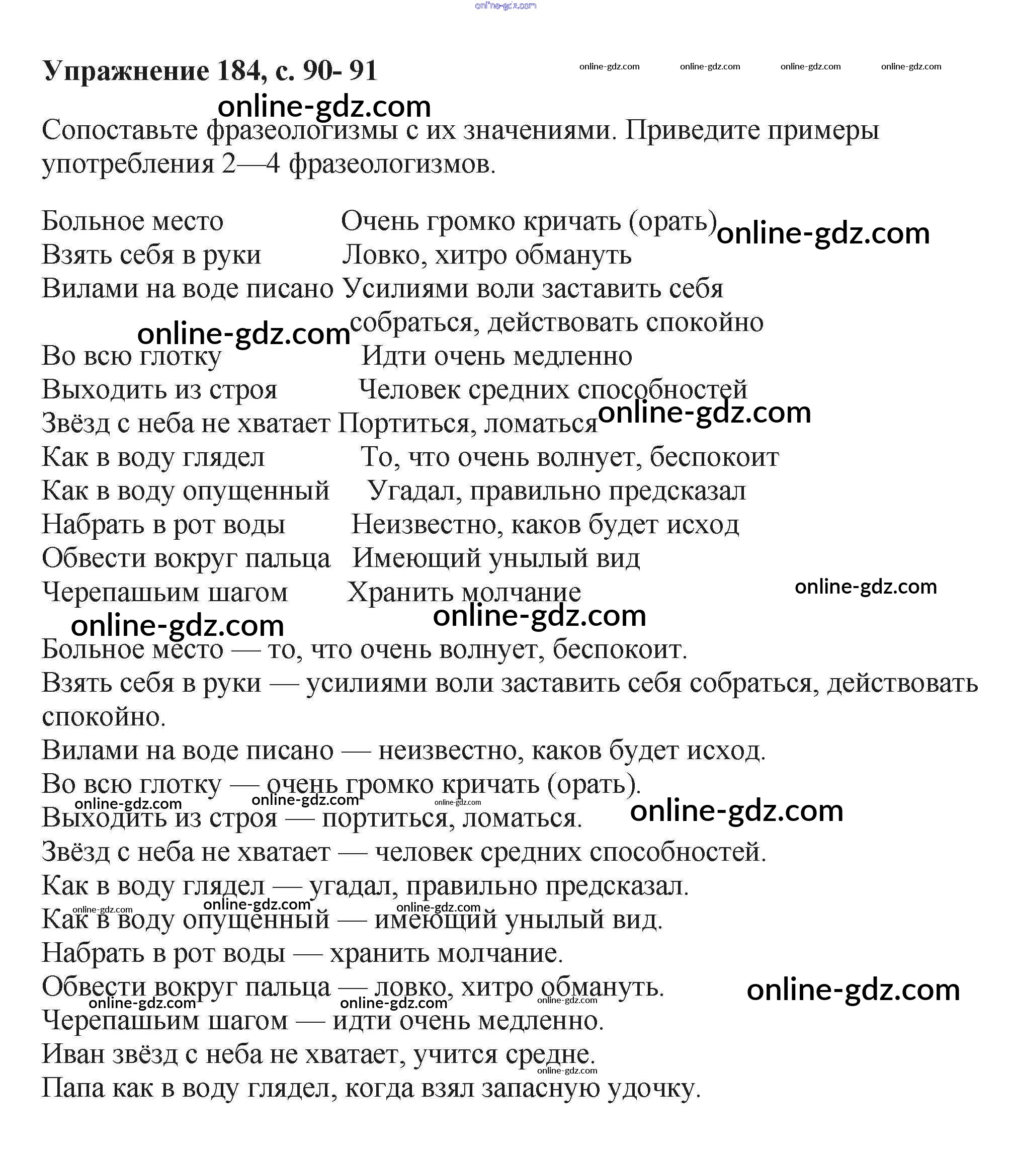 Готовые домашние задания по Русскому языку за 6 класс Учебник Баранов, Ладыженская 2015 - Упражнения Часть 1 184