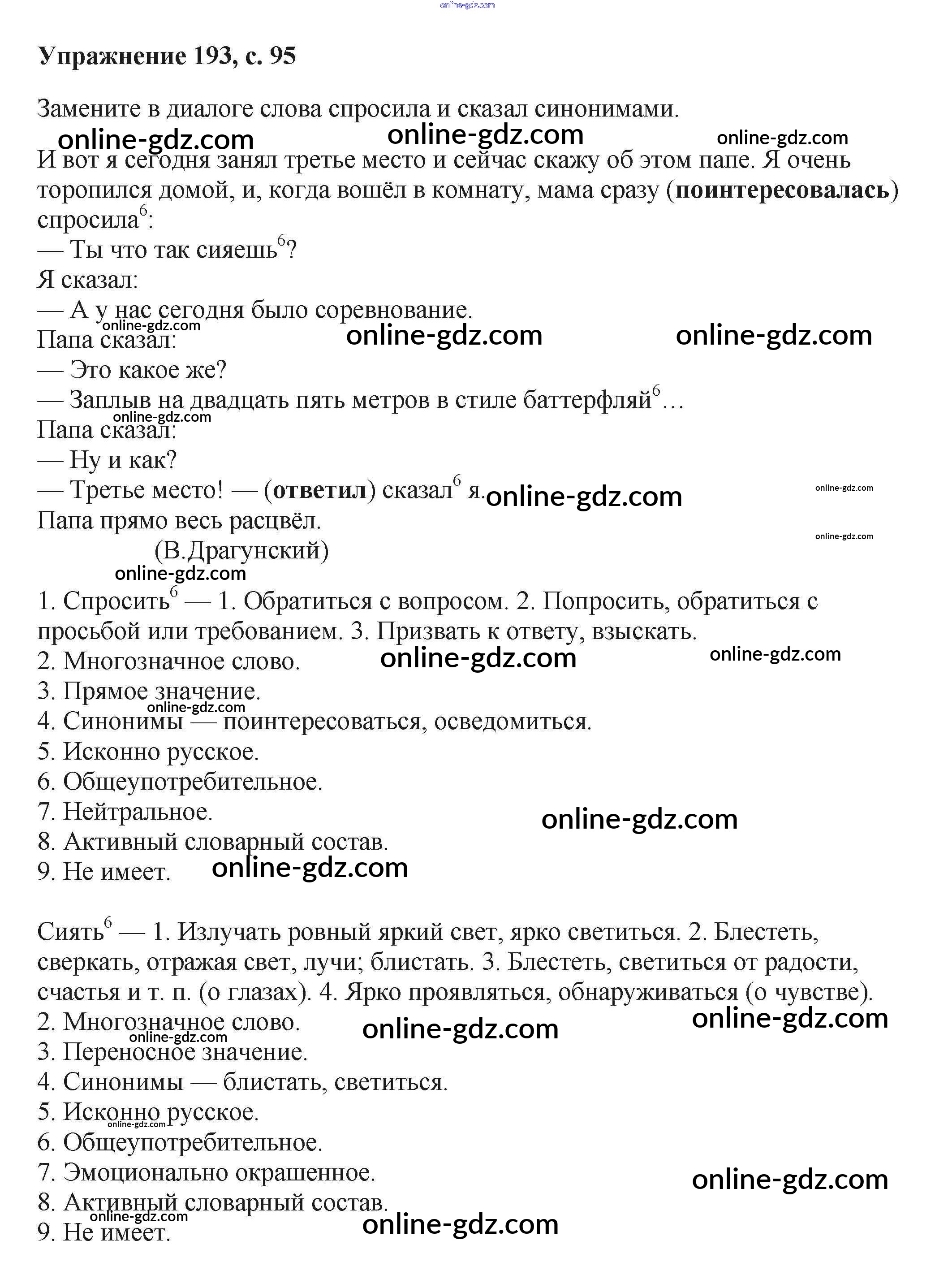 Готовые домашние задания по Русскому языку за 6 класс Учебник Баранов, Ладыженская 2015 - Упражнения Часть 1 193