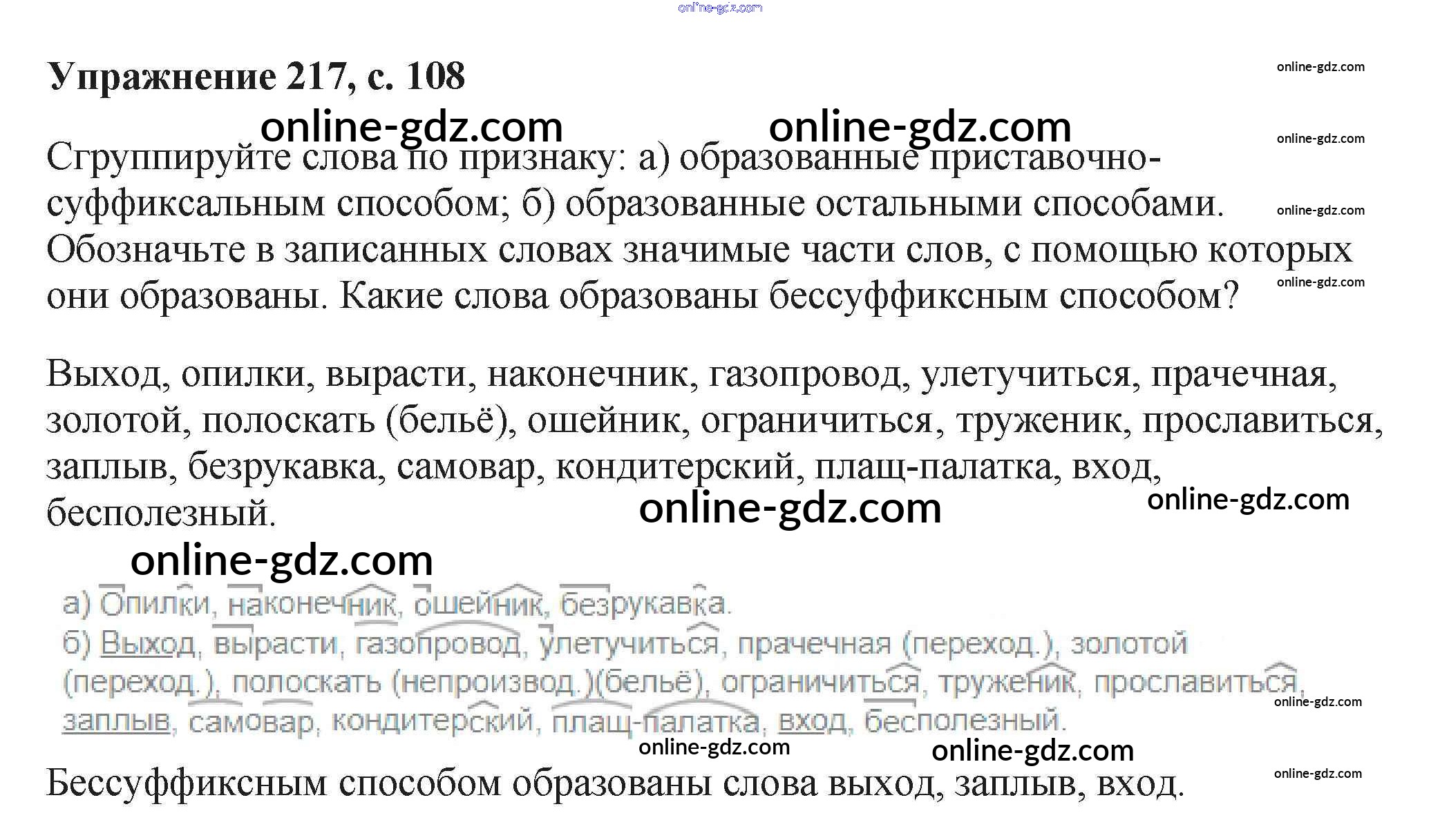 Готовые домашние задания по Русскому языку за 6 класс Учебник Баранов, Ладыженская 2015 - Упражнения Часть 1 217
